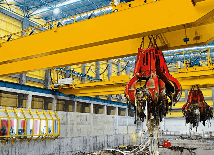 Выбор подъемного оборудования определяется видом перерабатываемых отходов и применяемой схемой их утилизации. Краны эксплуатируются в условиях повышенной запыленности, влажности, при колебаниях температур, возможна работа в коррозионной среде с опасными отходами. Установка оборудования с учетом типа вторичных материалов, производительности перерабатывающего комплекса, планировки цеха дает гарантии безопасной и эффективной работы.